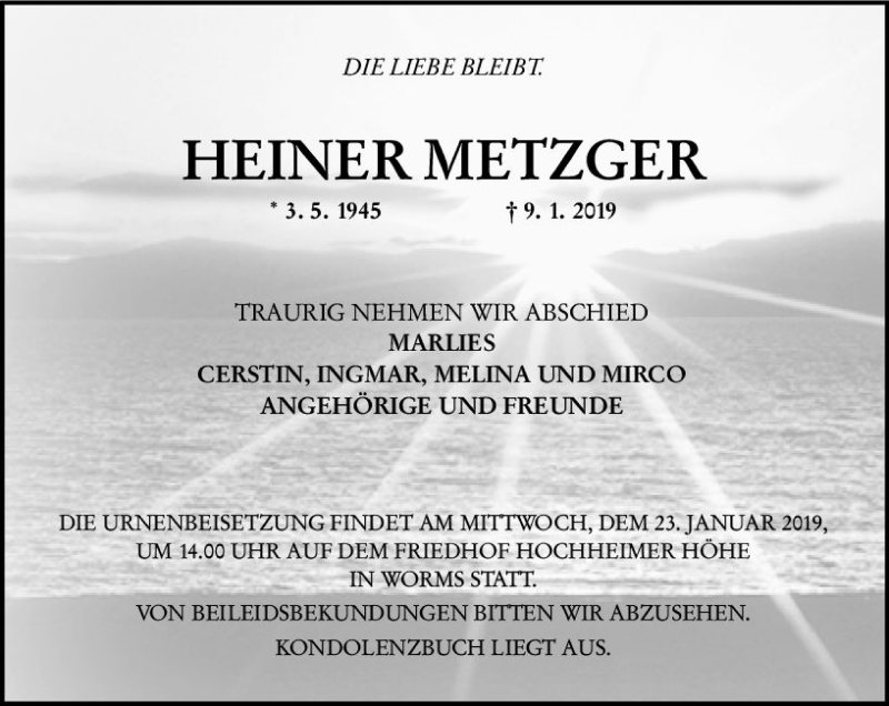 Hier finden Sie alle Traueranzeigen aus der Zeitung, die bisher für Heiner Metzger erschienen sind. Weitere Traueranzeigen, die in der Zeitung erscheinen, werden hier ebenfalls aufgelistet