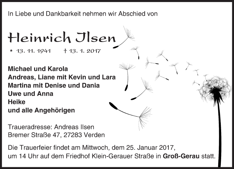Hier finden Sie alle Traueranzeigen aus der Zeitung, die bisher für Heinrich Ilsen erschienen sind. Weitere Traueranzeigen, die in der Zeitung erscheinen, werden hier ebenfalls aufgelistet