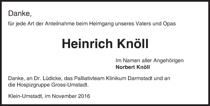 Hier finden Sie alle Traueranzeigen aus der Zeitung, die bisher für Heinrich Knöll erschienen sind. Weitere Traueranzeigen, die in der Zeitung erscheinen, werden hier ebenfalls aufgelistet