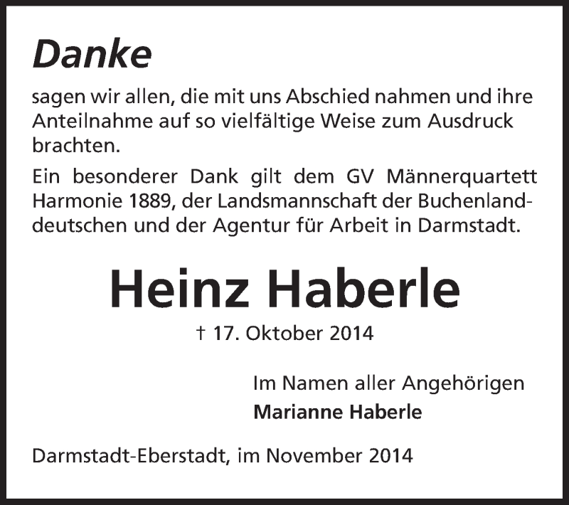 Hier finden Sie alle Traueranzeigen aus der Zeitung, die bisher für Heinz Haberle erschienen sind. Weitere Traueranzeigen, die in der Zeitung erscheinen, werden hier ebenfalls aufgelistet
