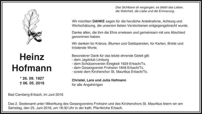Hier finden Sie alle Traueranzeigen aus der Zeitung, die bisher für Heinz Hofmann erschienen sind. Weitere Traueranzeigen, die in der Zeitung erscheinen, werden hier ebenfalls aufgelistet