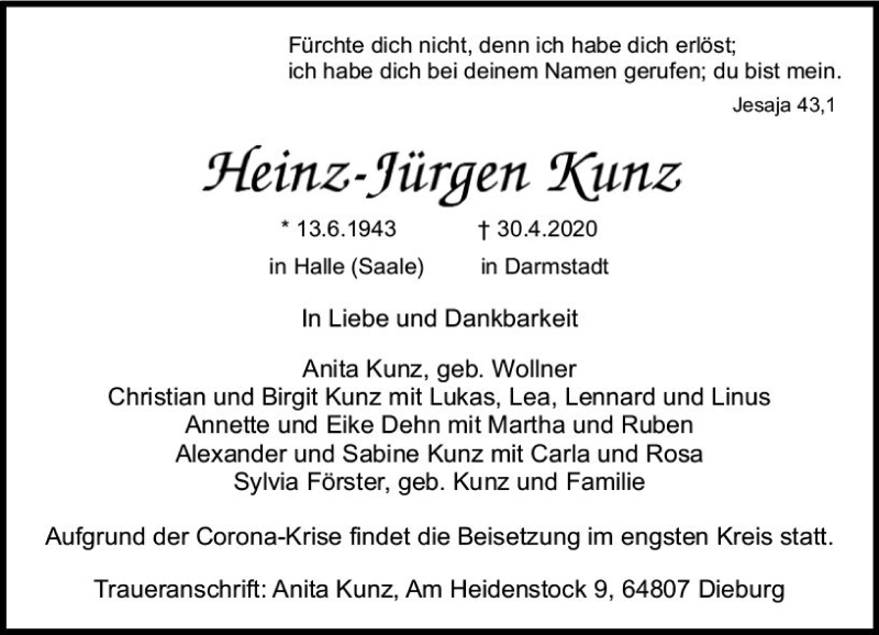 Hier finden Sie alle Traueranzeigen aus der Zeitung, die bisher für Heinz-Jürgen Kunz erschienen sind. Weitere Traueranzeigen, die in der Zeitung erscheinen, werden hier ebenfalls aufgelistet