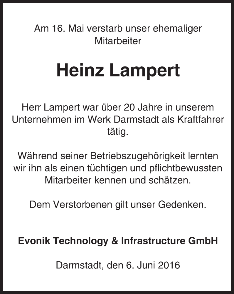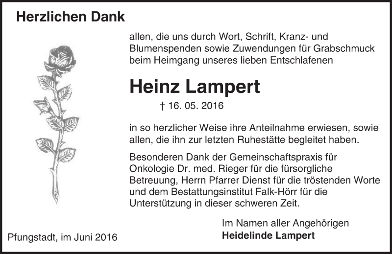 Hier finden Sie alle Traueranzeigen aus der Zeitung, die bisher für Heinz Lampert erschienen sind. Weitere Traueranzeigen, die in der Zeitung erscheinen, werden hier ebenfalls aufgelistet
