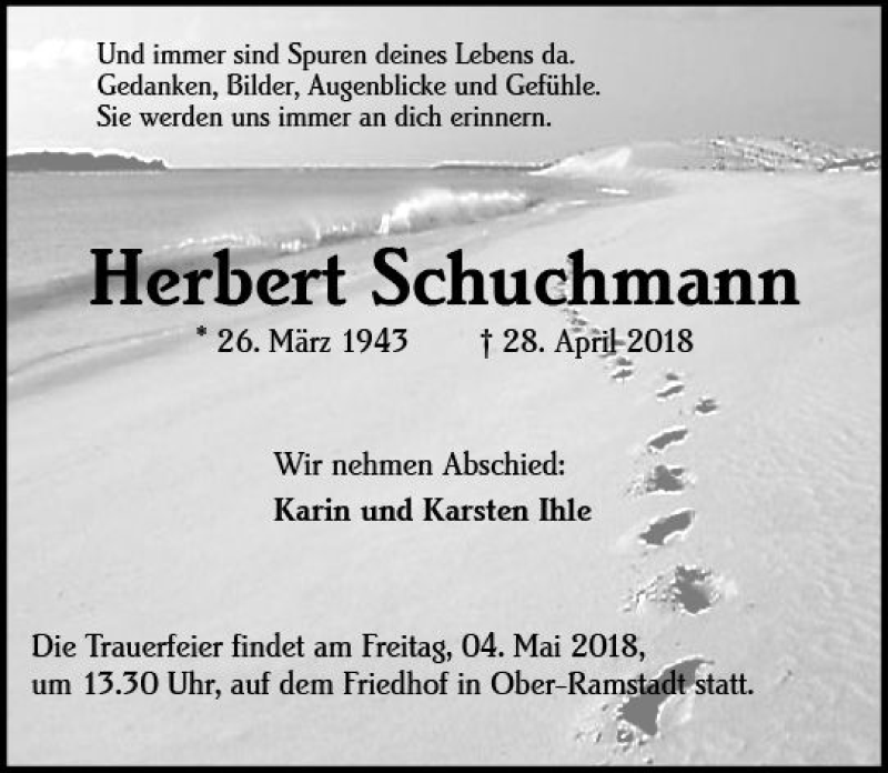 Hier finden Sie alle Traueranzeigen aus der Zeitung, die bisher für Heirbert Schuchmann erschienen sind. Weitere Traueranzeigen, die in der Zeitung erscheinen, werden hier ebenfalls aufgelistet