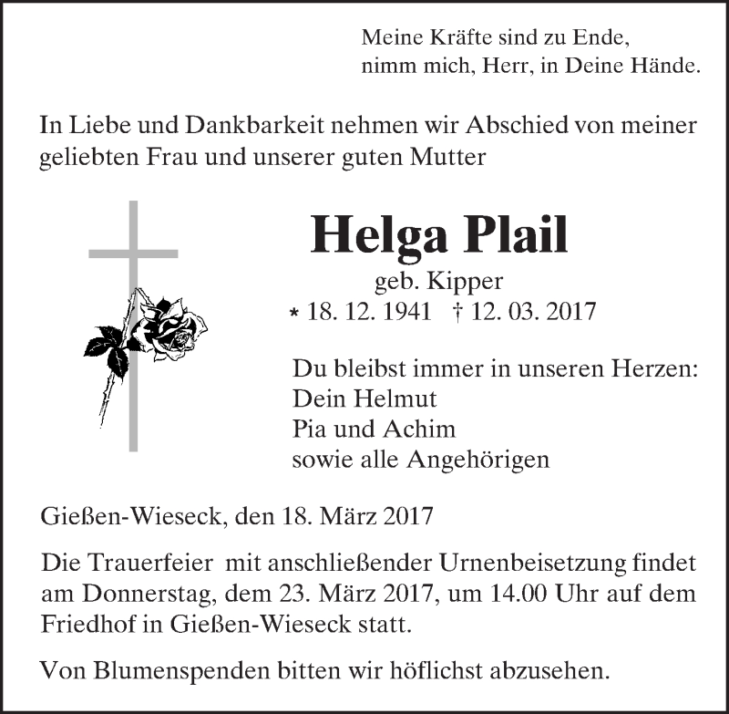 Hier finden Sie alle Traueranzeigen aus der Zeitung, die bisher für Helga Plail erschienen sind. Weitere Traueranzeigen, die in der Zeitung erscheinen, werden hier ebenfalls aufgelistet