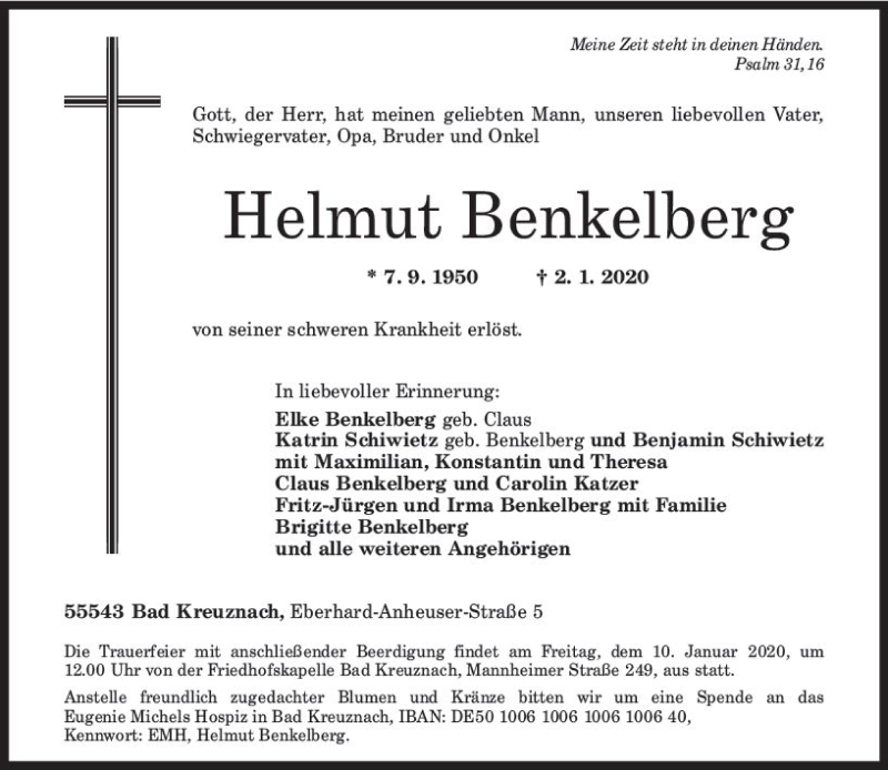 Hier finden Sie alle Traueranzeigen aus der Zeitung, die bisher für Helmut Benkelberg erschienen sind. Weitere Traueranzeigen, die in der Zeitung erscheinen, werden hier ebenfalls aufgelistet