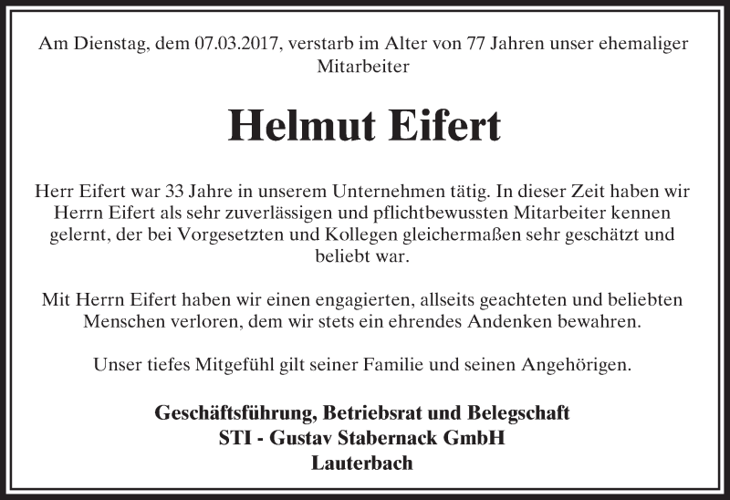 Hier finden Sie alle Traueranzeigen aus der Zeitung, die bisher für Helmut Eifert erschienen sind. Weitere Traueranzeigen, die in der Zeitung erscheinen, werden hier ebenfalls aufgelistet