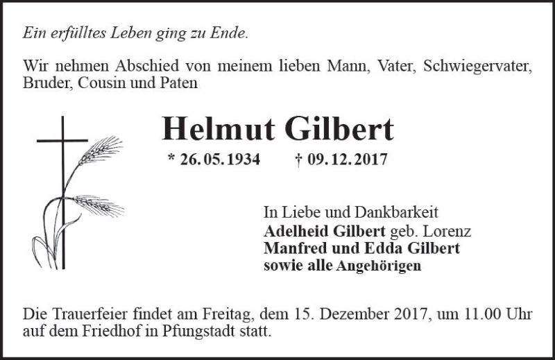 Hier finden Sie alle Traueranzeigen aus der Zeitung, die bisher für Helmut Gilbert erschienen sind. Weitere Traueranzeigen, die in der Zeitung erscheinen, werden hier ebenfalls aufgelistet