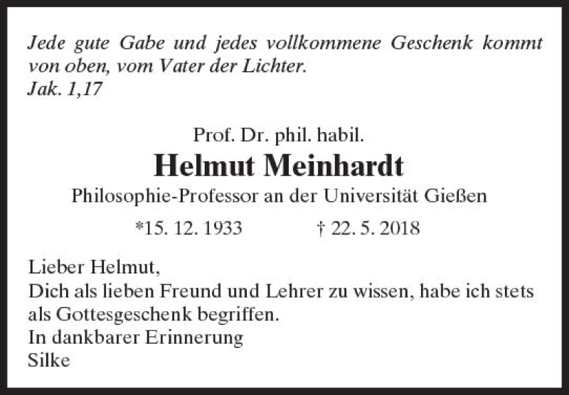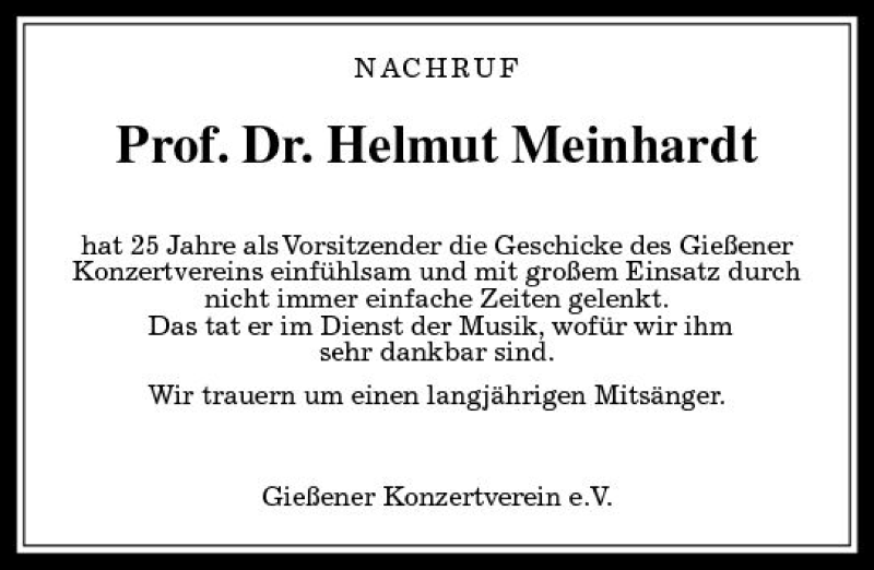 Hier finden Sie alle Traueranzeigen aus der Zeitung, die bisher für Helmut Meinhardt erschienen sind. Weitere Traueranzeigen, die in der Zeitung erscheinen, werden hier ebenfalls aufgelistet