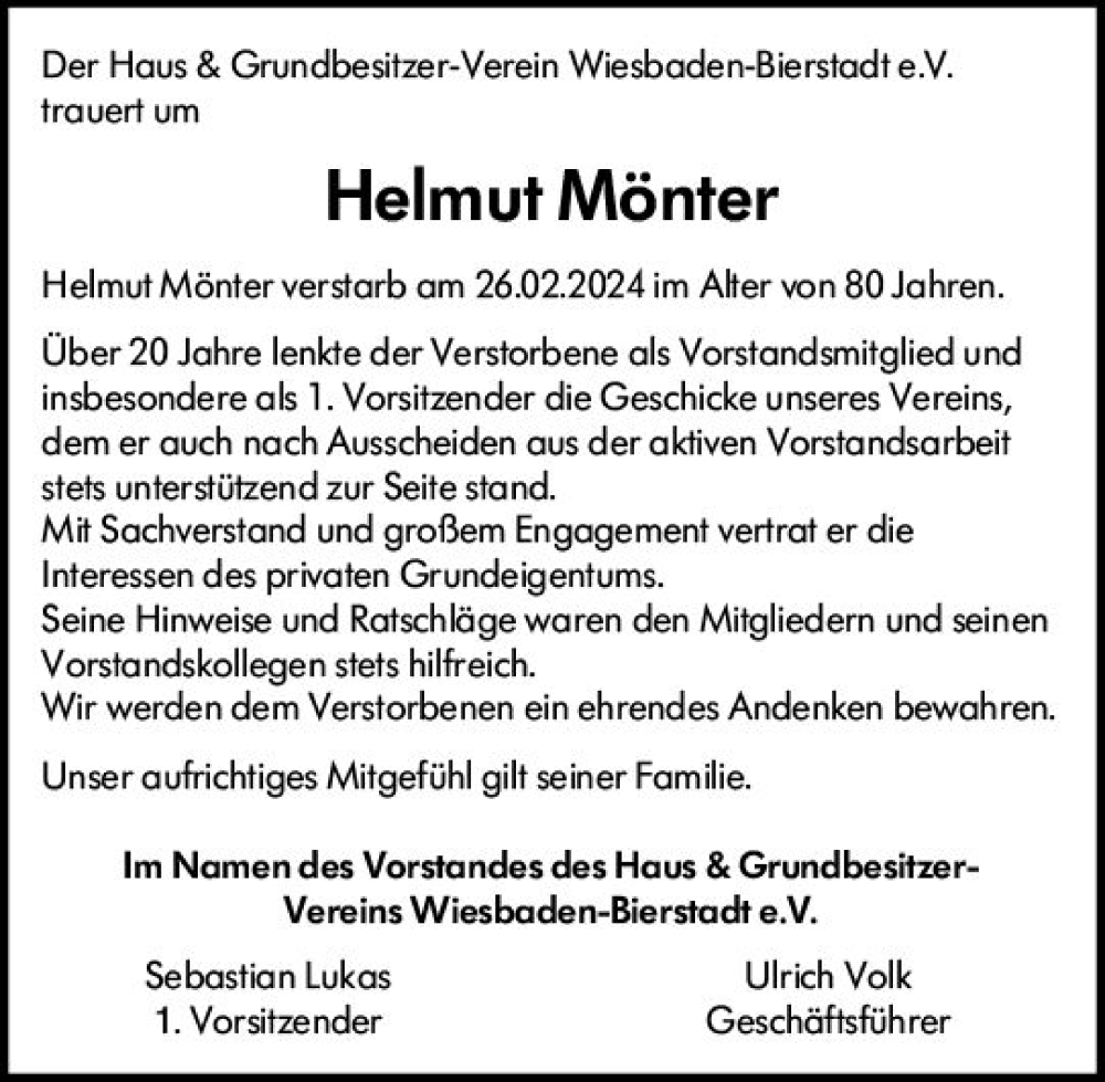 Hier finden Sie alle Traueranzeigen aus der Zeitung, die bisher für Helmut Mönter erschienen sind. Weitere Traueranzeigen, die in der Zeitung erscheinen, werden hier ebenfalls aufgelistet