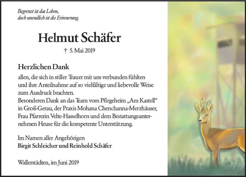 Hier finden Sie alle Traueranzeigen aus der Zeitung, die bisher für Helmut Schäfer erschienen sind. Weitere Traueranzeigen, die in der Zeitung erscheinen, werden hier ebenfalls aufgelistet
