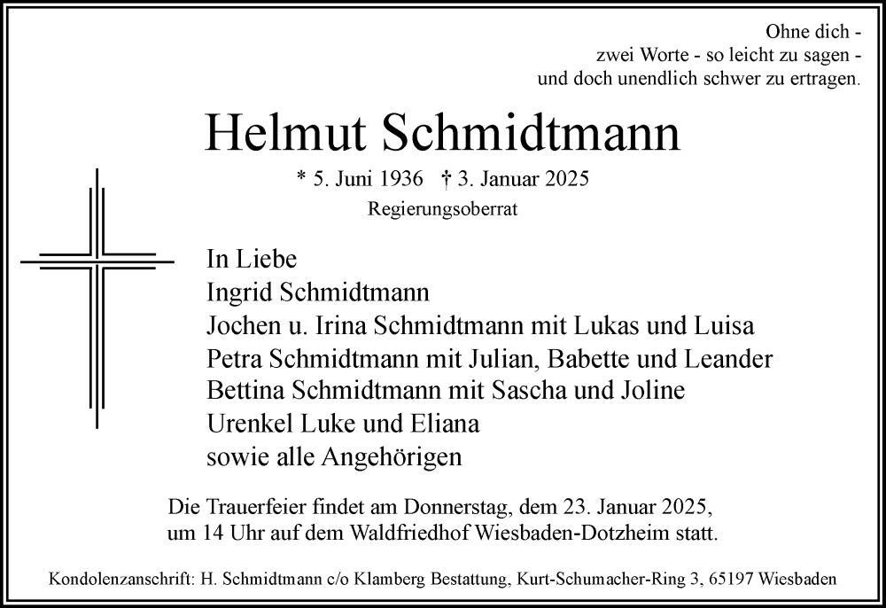 Hier finden Sie alle Traueranzeigen aus der Zeitung, die bisher für Helmut Schmidtmann erschienen sind. Weitere Traueranzeigen, die in der Zeitung erscheinen, werden hier ebenfalls aufgelistet