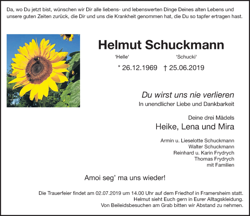 Hier finden Sie alle Traueranzeigen aus der Zeitung, die bisher für Helmut Schuckmann erschienen sind. Weitere Traueranzeigen, die in der Zeitung erscheinen, werden hier ebenfalls aufgelistet