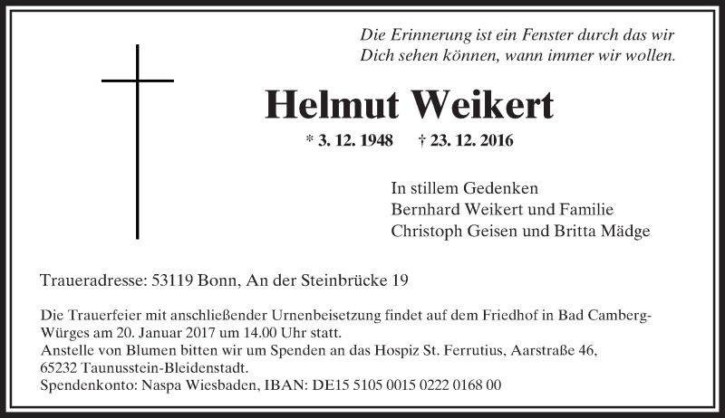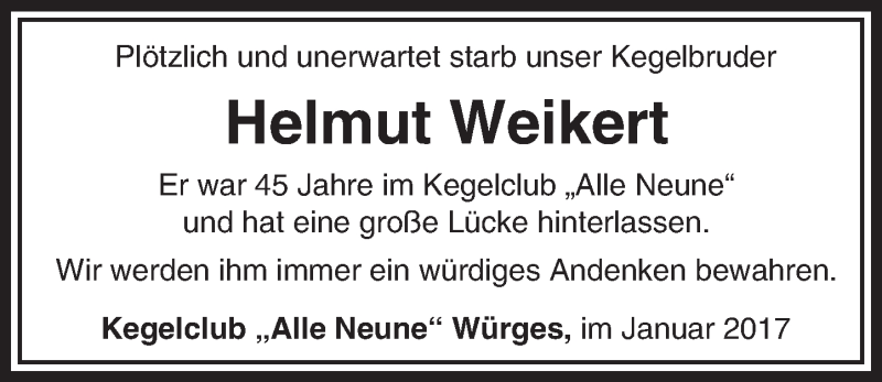 Hier finden Sie alle Traueranzeigen aus der Zeitung, die bisher für Helmut Weikert erschienen sind. Weitere Traueranzeigen, die in der Zeitung erscheinen, werden hier ebenfalls aufgelistet