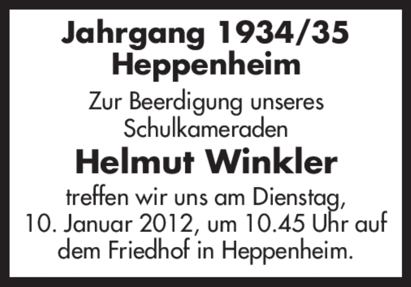 Hier finden Sie alle Traueranzeigen aus der Zeitung, die bisher für Helmut Winkler erschienen sind. Weitere Traueranzeigen, die in der Zeitung erscheinen, werden hier ebenfalls aufgelistet