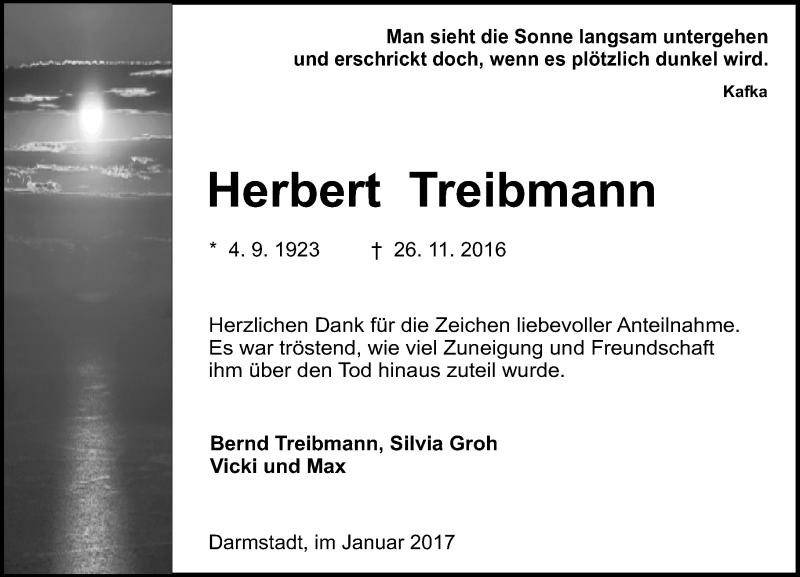 Hier finden Sie alle Traueranzeigen aus der Zeitung, die bisher für Herbert Treibmann erschienen sind. Weitere Traueranzeigen, die in der Zeitung erscheinen, werden hier ebenfalls aufgelistet