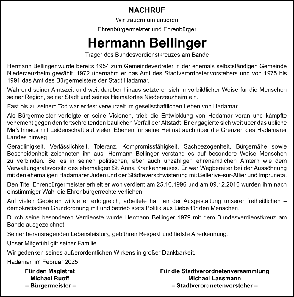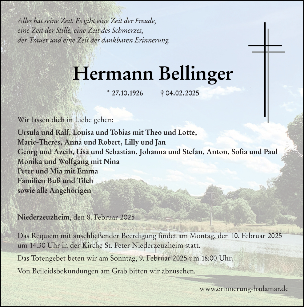Hier finden Sie alle Traueranzeigen aus der Zeitung, die bisher für Hermann Bellinger erschienen sind. Weitere Traueranzeigen, die in der Zeitung erscheinen, werden hier ebenfalls aufgelistet