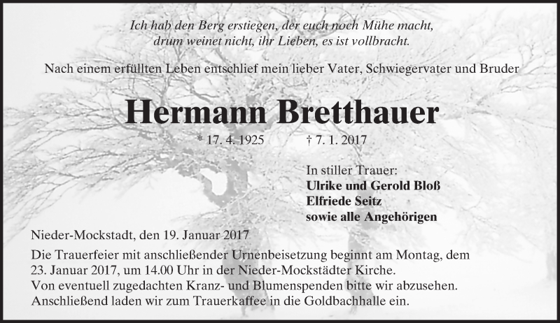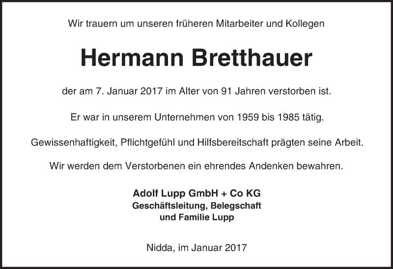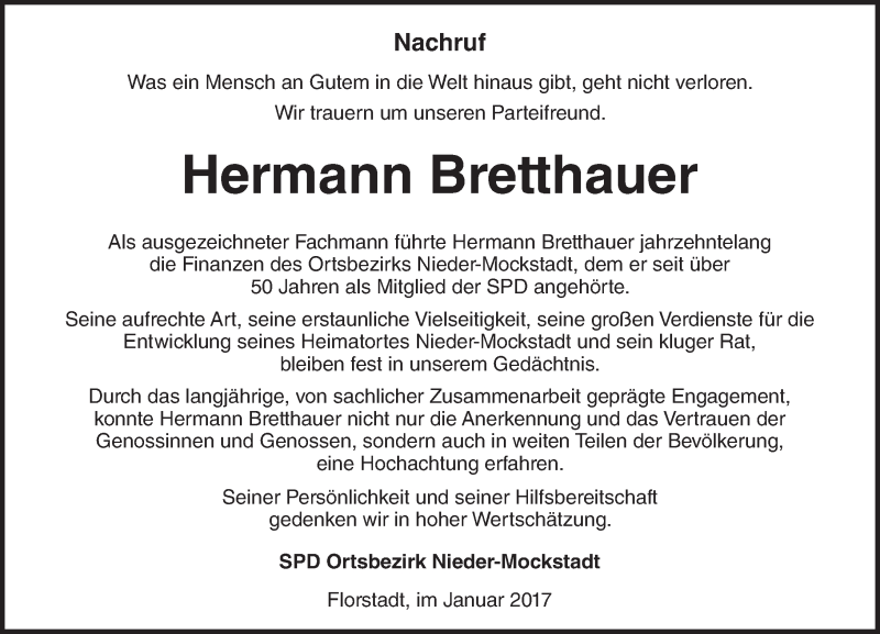 Hier finden Sie alle Traueranzeigen aus der Zeitung, die bisher für Hermann Bretthauer erschienen sind. Weitere Traueranzeigen, die in der Zeitung erscheinen, werden hier ebenfalls aufgelistet