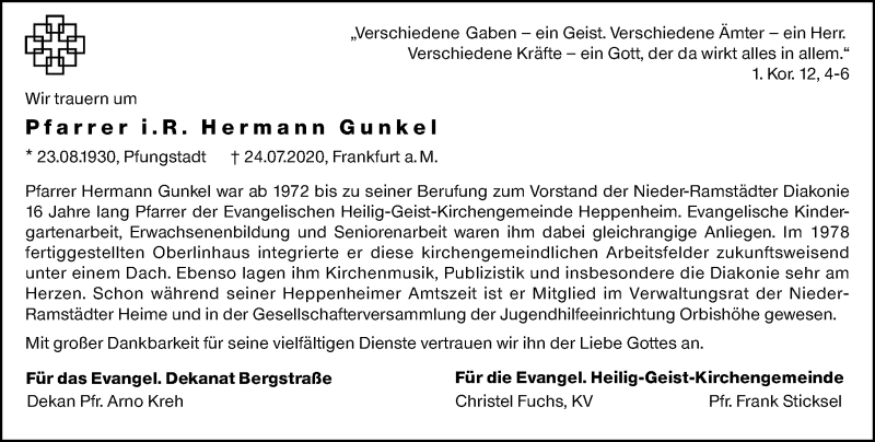Hier finden Sie alle Traueranzeigen aus der Zeitung, die bisher für Hermann Gunkel erschienen sind. Weitere Traueranzeigen, die in der Zeitung erscheinen, werden hier ebenfalls aufgelistet