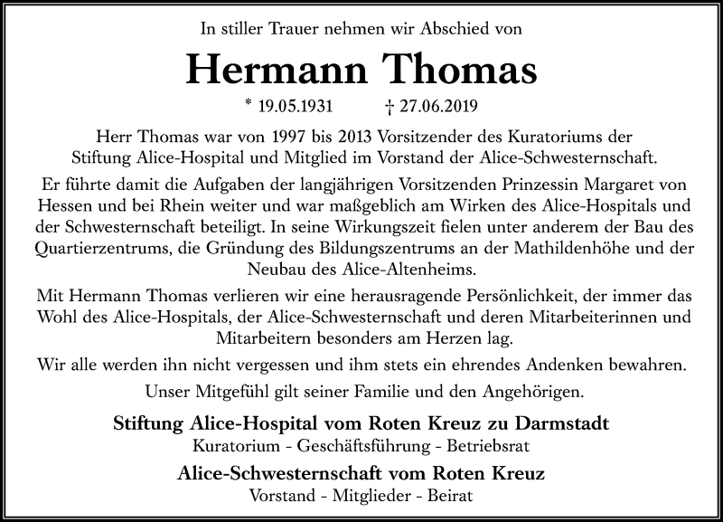 Hier finden Sie alle Traueranzeigen aus der Zeitung, die bisher für Hermann Thomas erschienen sind. Weitere Traueranzeigen, die in der Zeitung erscheinen, werden hier ebenfalls aufgelistet