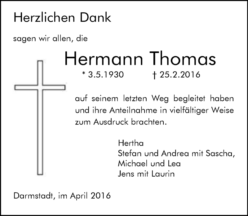Hier finden Sie alle Traueranzeigen aus der Zeitung, die bisher für Hermann Thomas erschienen sind. Weitere Traueranzeigen, die in der Zeitung erscheinen, werden hier ebenfalls aufgelistet