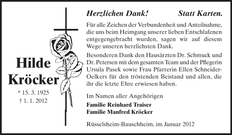 Hier finden Sie alle Traueranzeigen aus der Zeitung, die bisher für Hilde Kröcker erschienen sind. Weitere Traueranzeigen, die in der Zeitung erscheinen, werden hier ebenfalls aufgelistet