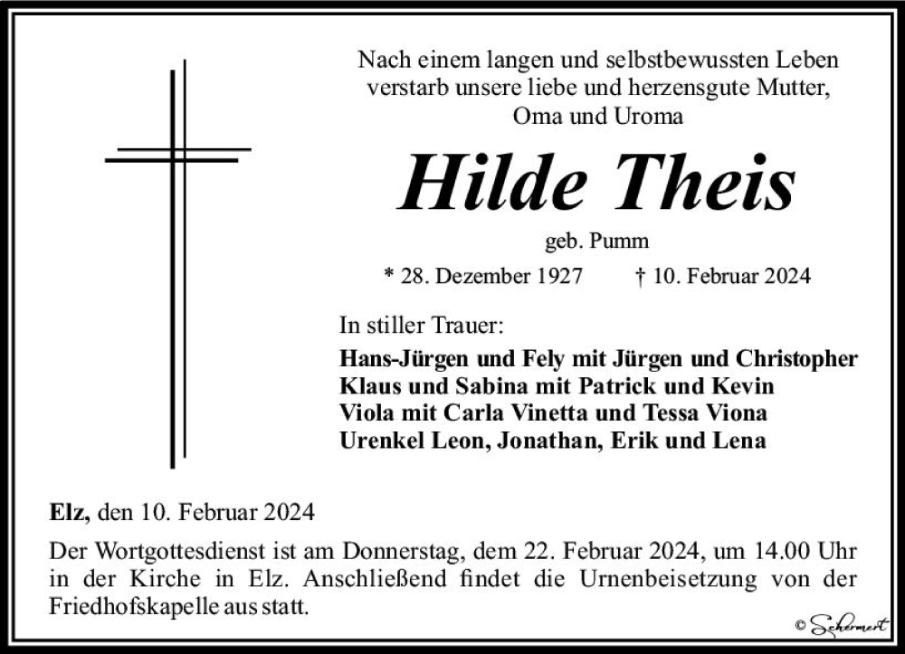 Hier finden Sie alle Traueranzeigen aus der Zeitung, die bisher für Hilde Theis erschienen sind. Weitere Traueranzeigen, die in der Zeitung erscheinen, werden hier ebenfalls aufgelistet