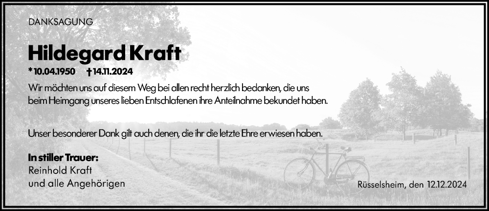 Hier finden Sie alle Traueranzeigen aus der Zeitung, die bisher für Hildegard Kraft erschienen sind. Weitere Traueranzeigen, die in der Zeitung erscheinen, werden hier ebenfalls aufgelistet