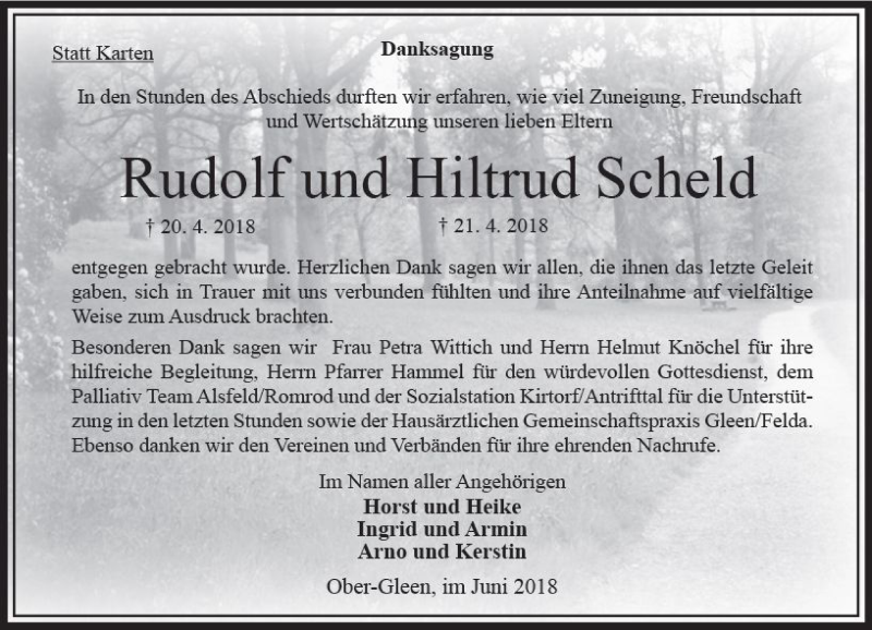 Hier finden Sie alle Traueranzeigen aus der Zeitung, die bisher für Hiltrud Scheld erschienen sind. Weitere Traueranzeigen, die in der Zeitung erscheinen, werden hier ebenfalls aufgelistet
