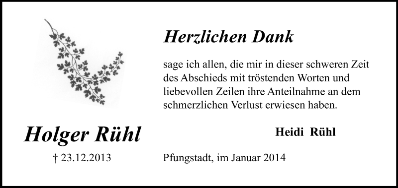 Hier finden Sie alle Traueranzeigen aus der Zeitung, die bisher für Holger Rühl erschienen sind. Weitere Traueranzeigen, die in der Zeitung erscheinen, werden hier ebenfalls aufgelistet