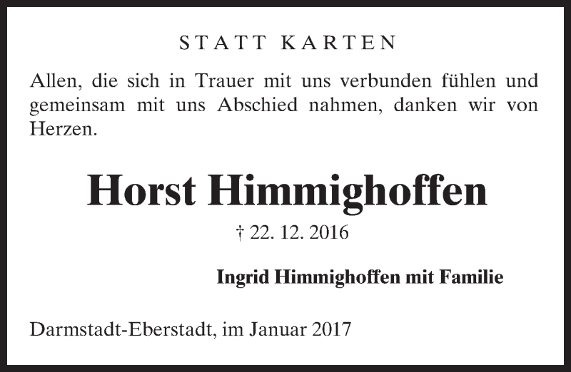 Hier finden Sie alle Traueranzeigen aus der Zeitung, die bisher für Horst Himmighoffen erschienen sind. Weitere Traueranzeigen, die in der Zeitung erscheinen, werden hier ebenfalls aufgelistet