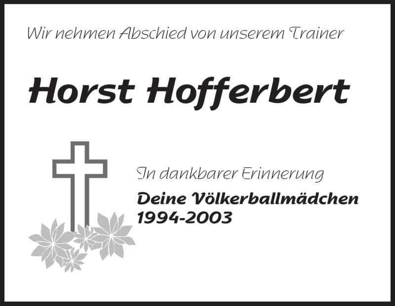 Hier finden Sie alle Traueranzeigen aus der Zeitung, die bisher für Horst Hofferbert erschienen sind. Weitere Traueranzeigen, die in der Zeitung erscheinen, werden hier ebenfalls aufgelistet