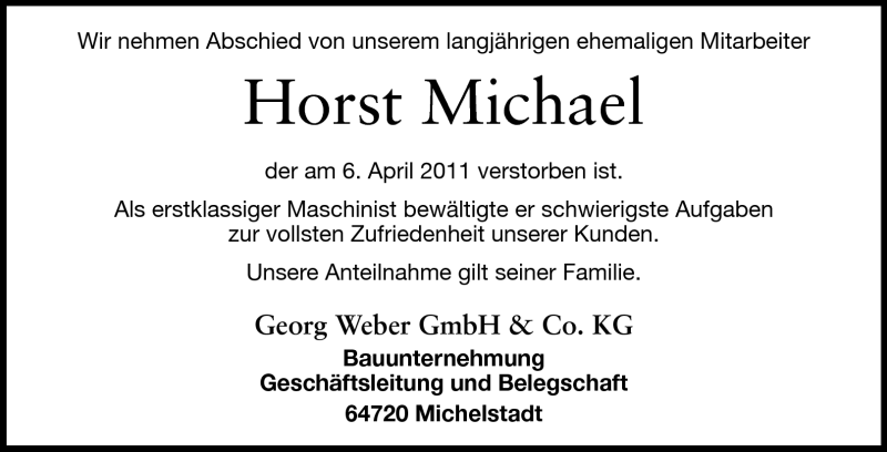 Hier finden Sie alle Traueranzeigen aus der Zeitung, die bisher für Horst Michael erschienen sind. Weitere Traueranzeigen, die in der Zeitung erscheinen, werden hier ebenfalls aufgelistet