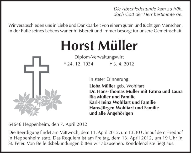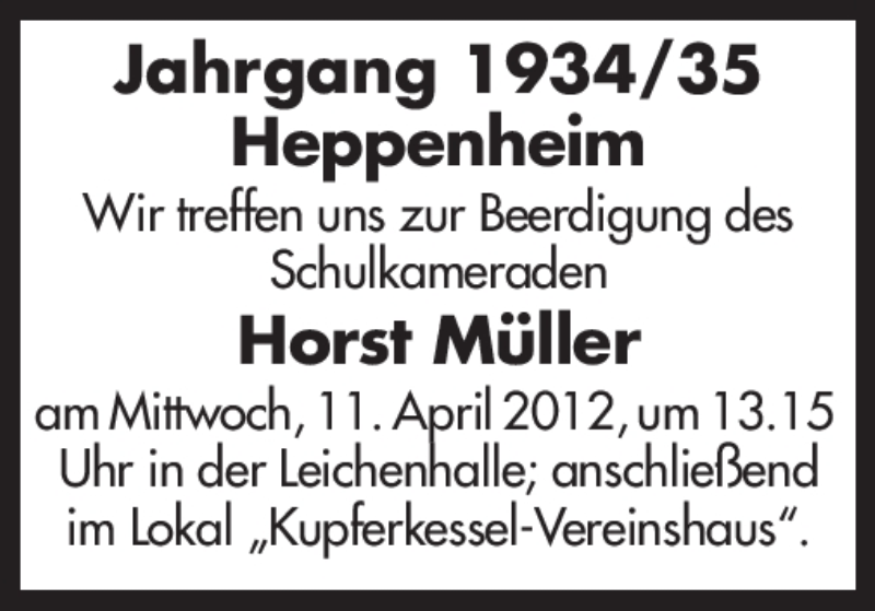 Hier finden Sie alle Traueranzeigen aus der Zeitung, die bisher für Horst Müller erschienen sind. Weitere Traueranzeigen, die in der Zeitung erscheinen, werden hier ebenfalls aufgelistet