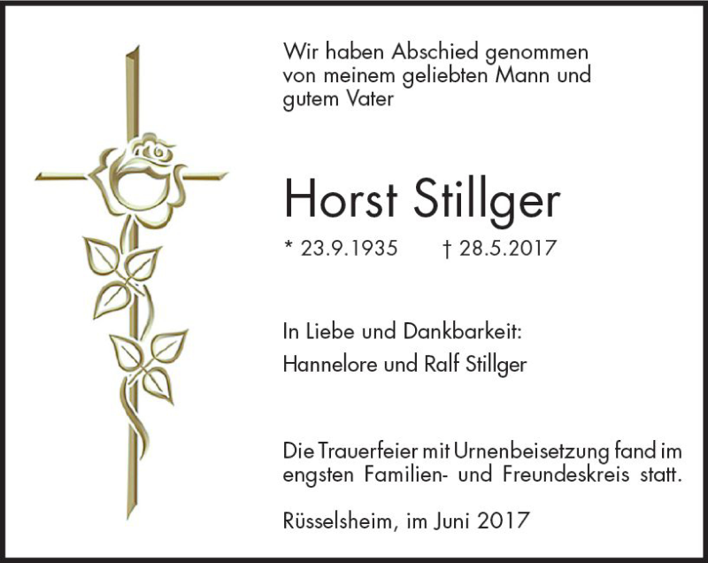 Hier finden Sie alle Traueranzeigen aus der Zeitung, die bisher für Horst Stillger erschienen sind. Weitere Traueranzeigen, die in der Zeitung erscheinen, werden hier ebenfalls aufgelistet