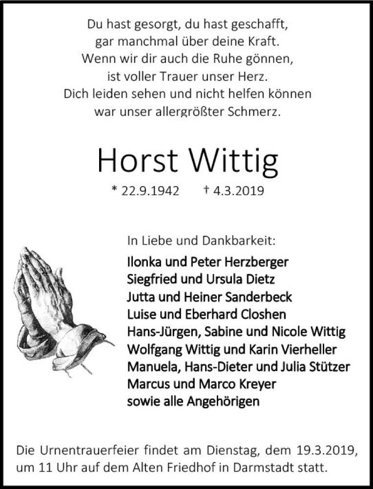 Hier finden Sie alle Traueranzeigen aus der Zeitung, die bisher für Horst Wittig erschienen sind. Weitere Traueranzeigen, die in der Zeitung erscheinen, werden hier ebenfalls aufgelistet