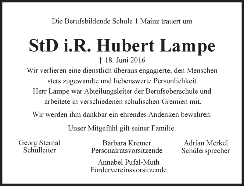 Hier finden Sie alle Traueranzeigen aus der Zeitung, die bisher für Hubert Lampe erschienen sind. Weitere Traueranzeigen, die in der Zeitung erscheinen, werden hier ebenfalls aufgelistet