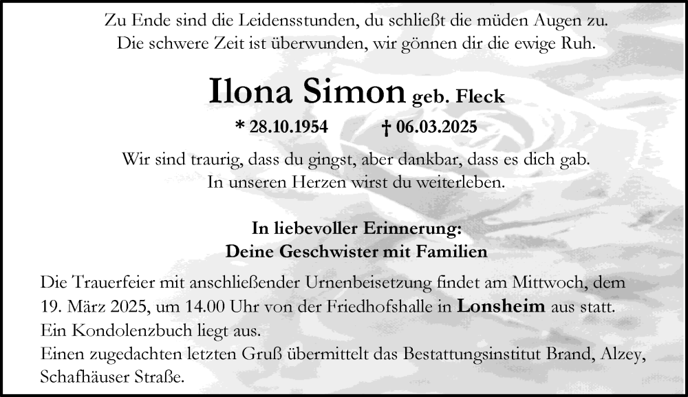 Hier finden Sie alle Traueranzeigen aus der Zeitung, die bisher für Ilona Simon erschienen sind. Weitere Traueranzeigen, die in der Zeitung erscheinen, werden hier ebenfalls aufgelistet