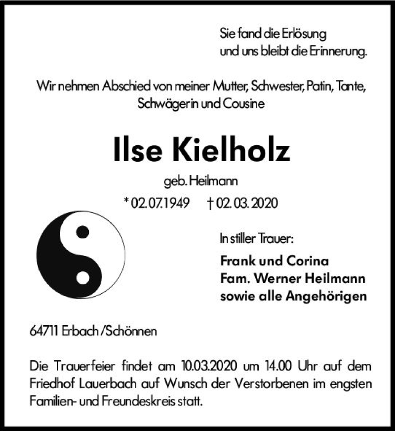 Hier finden Sie alle Traueranzeigen aus der Zeitung, die bisher für Ilse Kielholz erschienen sind. Weitere Traueranzeigen, die in der Zeitung erscheinen, werden hier ebenfalls aufgelistet