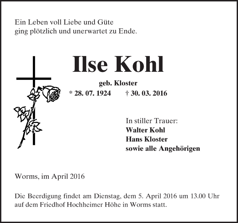 Hier finden Sie alle Traueranzeigen aus der Zeitung, die bisher für Ilse Kohl erschienen sind. Weitere Traueranzeigen, die in der Zeitung erscheinen, werden hier ebenfalls aufgelistet