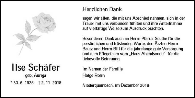 Hier finden Sie alle Traueranzeigen aus der Zeitung, die bisher für Ilse Schäfer erschienen sind. Weitere Traueranzeigen, die in der Zeitung erscheinen, werden hier ebenfalls aufgelistet