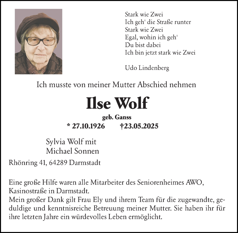Hier finden Sie alle Traueranzeigen aus der Zeitung, die bisher für Ilse Wolf erschienen sind. Weitere Traueranzeigen, die in der Zeitung erscheinen, werden hier ebenfalls aufgelistet