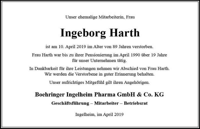 Hier finden Sie alle Traueranzeigen aus der Zeitung, die bisher für Ingeborg Harth erschienen sind. Weitere Traueranzeigen, die in der Zeitung erscheinen, werden hier ebenfalls aufgelistet