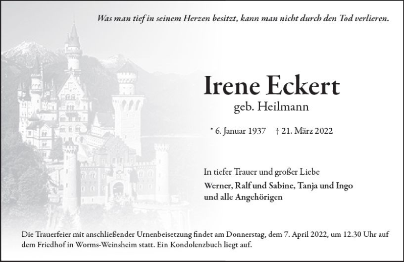 Hier finden Sie alle Traueranzeigen aus der Zeitung, die bisher für Irene Eckert erschienen sind. Weitere Traueranzeigen, die in der Zeitung erscheinen, werden hier ebenfalls aufgelistet