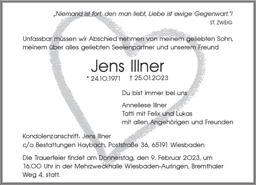 Hier finden Sie alle Traueranzeigen aus der Zeitung, die bisher für Jens Illner erschienen sind. Weitere Traueranzeigen, die in der Zeitung erscheinen, werden hier ebenfalls aufgelistet