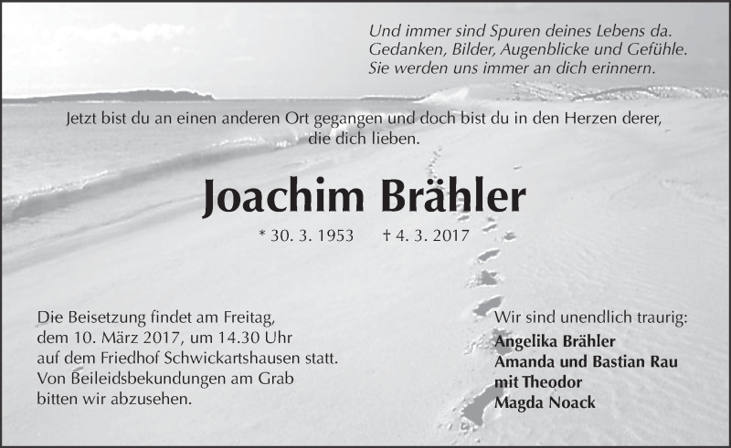 Hier finden Sie alle Traueranzeigen aus der Zeitung, die bisher für Joachim Brähler erschienen sind. Weitere Traueranzeigen, die in der Zeitung erscheinen, werden hier ebenfalls aufgelistet