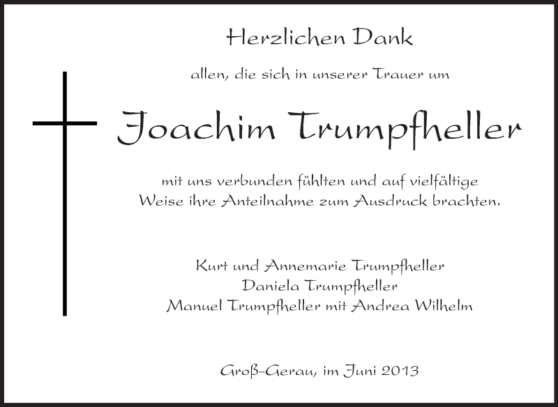 Hier finden Sie alle Traueranzeigen aus der Zeitung, die bisher für Joachim Trumpfheller erschienen sind. Weitere Traueranzeigen, die in der Zeitung erscheinen, werden hier ebenfalls aufgelistet