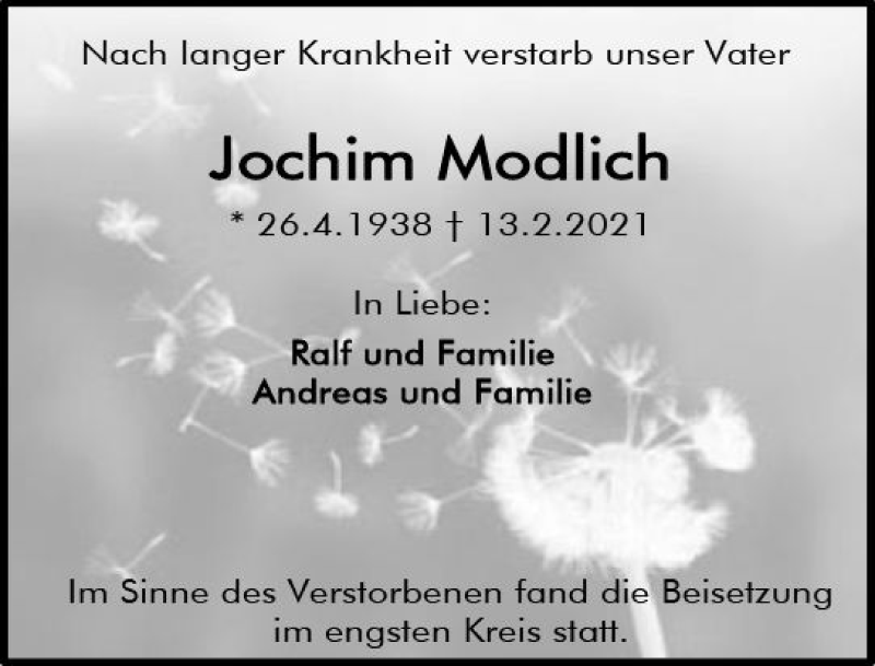Hier finden Sie alle Traueranzeigen aus der Zeitung, die bisher für Jochim Modlich erschienen sind. Weitere Traueranzeigen, die in der Zeitung erscheinen, werden hier ebenfalls aufgelistet