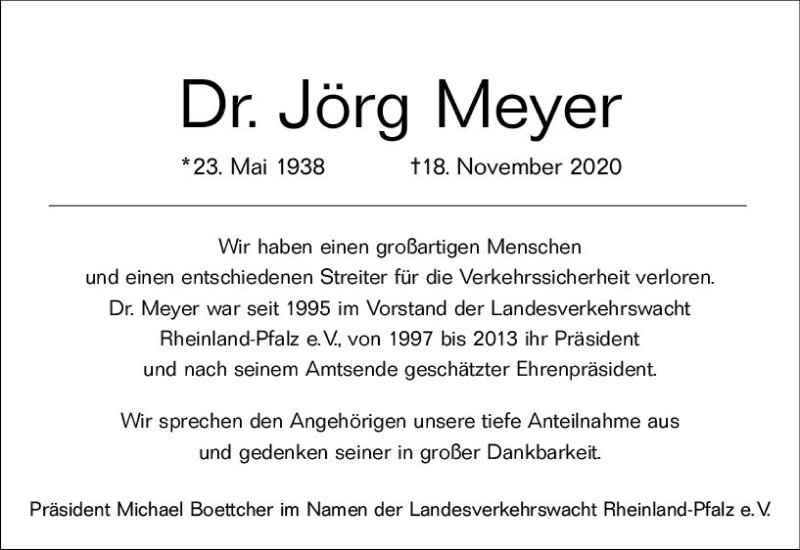 Hier finden Sie alle Traueranzeigen aus der Zeitung, die bisher für Jörg Meyer erschienen sind. Weitere Traueranzeigen, die in der Zeitung erscheinen, werden hier ebenfalls aufgelistet