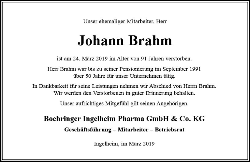 Hier finden Sie alle Traueranzeigen aus der Zeitung, die bisher für Johann Brahm erschienen sind. Weitere Traueranzeigen, die in der Zeitung erscheinen, werden hier ebenfalls aufgelistet